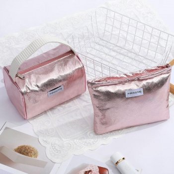 Shiny Silver Sequin Makeup Organizer Bag